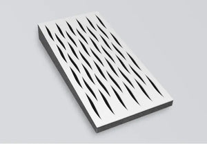 Decosorber Natur absorbers are specially designed for mid frequency absorption. They are made from highest quality polyester foam (USAP*), coated with a black velvet layer and covered with a 4mm Poplar plywood plate which is available in different designs and colors with a semi gloss finish. Because of the natural wood and its grains, every panel is unique in its look, giving your space a warm ambience.