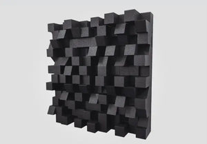 Not just another molded plastic deflector panel, Bigfuser I is a 16cm deep 3D diffuser made of hardened expanded polystyrene with acrylic paint finish sculpted in a series of block and cavity shapes for effective hemispherical scattering. The unique shape converts incoming sound waves into 3-dimensional space for a more enveloping sound-field. This very affordable module eliminates slap echoes while maintaining mid and high-frequency energy in the room. Bigfusers scatter a wide range of frequencies, starting at 350Hz, and going all the way up to 6kHz. They are part of a balanced treatment approach when used with 2D diffusers, absorbers, and Decosorbers in a total room acoustic plan. Easy installation with spray glue, construction adhesives, or the optional magnetic installation kit.