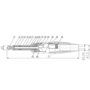 Stereo Jack Cable Connector 6.35 mm with three contacts and a well-formed and robust button for a better user experience