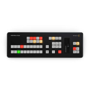 The ATEM Micro Panel is a low cost solution for adding panel control to ATEM Software control. Featuring the same high end buttons as ATEM Advanced Panels you get a true broadcast quality feel. It also has a familiar layout with buttons for program and preview. You can use the shift buttons to access up to 20 sources. There are 4 upstream and 2 downstream key buttons, plus a macro button. It even has 4 M/E buttons so you can control a massive 4 M/E switcher! There’s a fader for smooth manual transition control, which also means it’s low profile and very portable. With connection via USB-C or Bluetooth and a large internal battery, ATEM Micro Panel is perfect when you need a portable panel!
