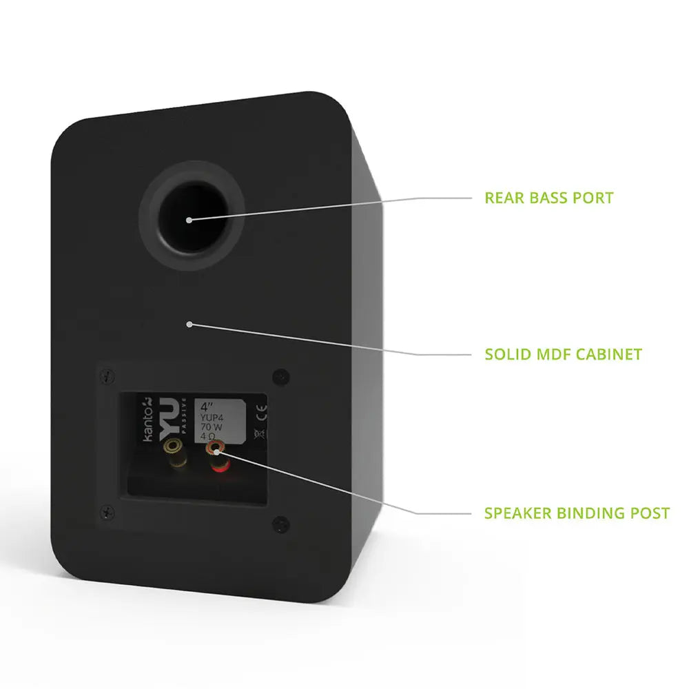 Kanto YU Passive 4" Speakers with 1" Silk Dome Tweeter and 4" Kevlar Woofer - Black, Pair is designed for purists who appreciate clarity, balance, and flexibility. These passive bookshelf speakers pair perfectly with the amplifier of your choice, offering a customized listening experience whether you're setting up a desktop DAC/amp combo, enhancing your TV's audio, or building a surround sound home theater.