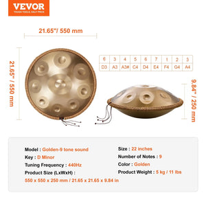 VEVOR Handpan Drum 22 in 9 Notes D Minor Steel Hand Drum with Mallets for Adult