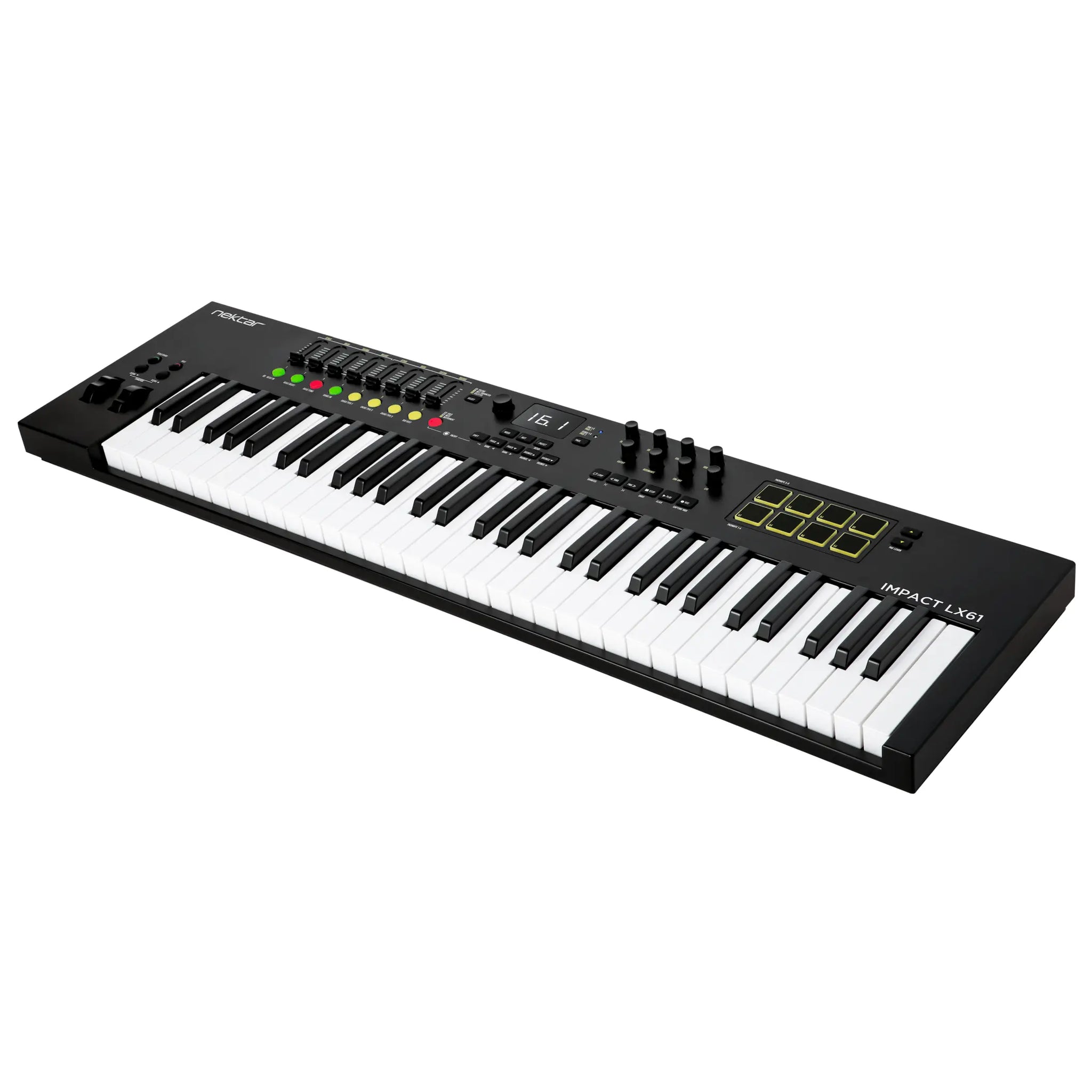 The Impact LX61 mk3 MIDI controller keyboard combines an expressive, redesigned keybed with 9 full-resolution encoders, 8 faders, 8 velocity sensitive pads and tons of buttons to give you instant access to performance or DAW integration features.