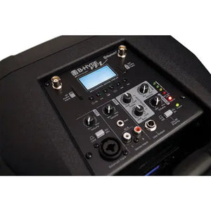 The system is equipped with: one 1"compression driver exit and one 10" woofer. The input section allows the user to connect: up to three wired inputs, one wireless microphone, and different media inputs (including Bluetooth? ). Users can also connect the audio output to a second speaker. The control section is equipped with an equaliser and a CH1/RF priority function that attenuates the level of every channel but Channel 1 and the Radio microphones for a smooth automatic ducking effect.