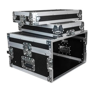 This road case has a 19" 4RU amp rack and an adjustable 19" 10RU mixer rack built in. Easily accessible from both front, rear and the top, allowing for easy access to connections and setup of the rack equipment.