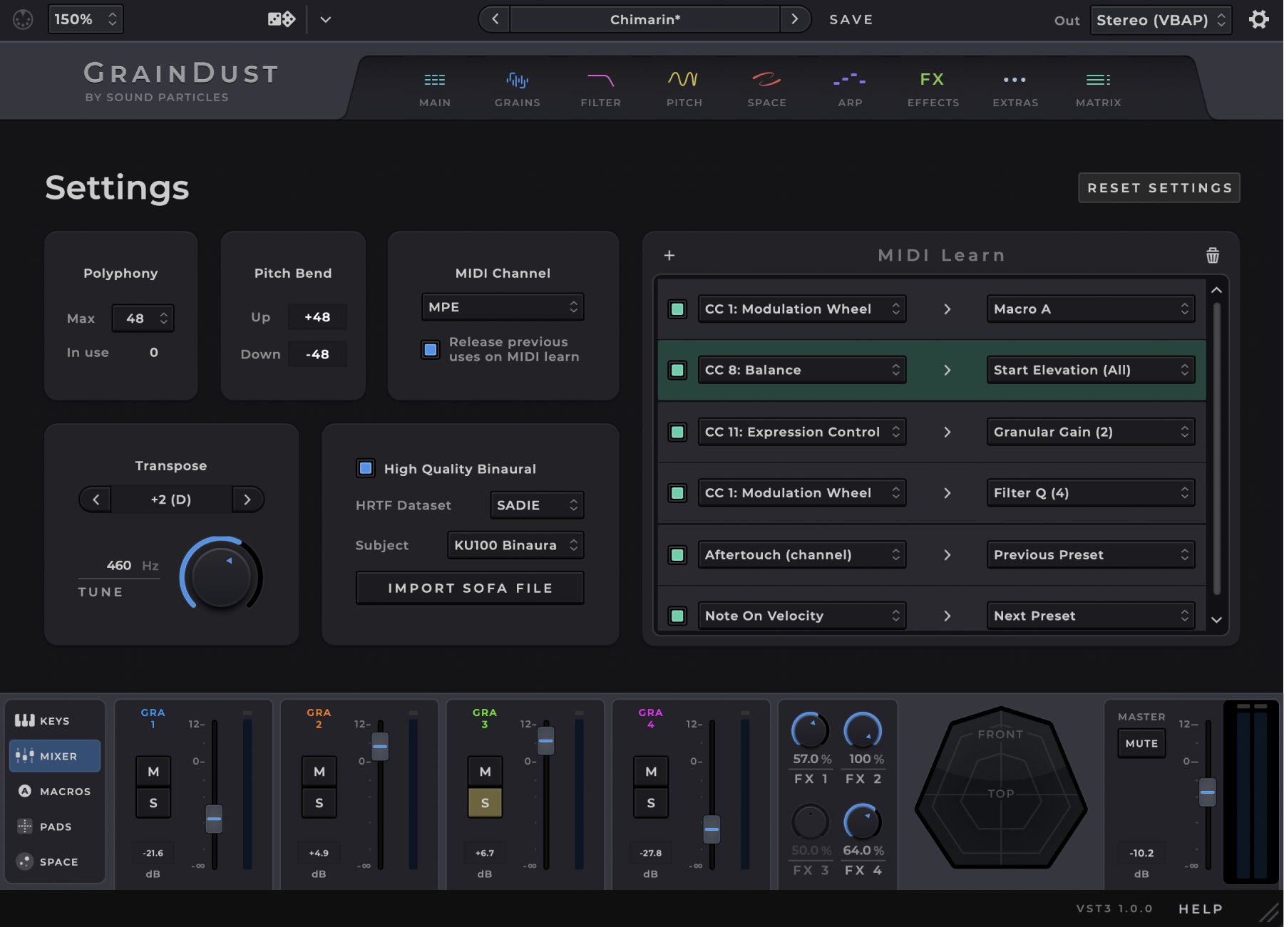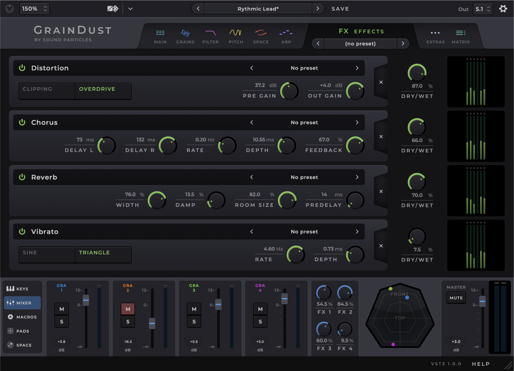 Get a massive 100 simultaneous grains per note (25 grains x 5 voices x 4 layers).