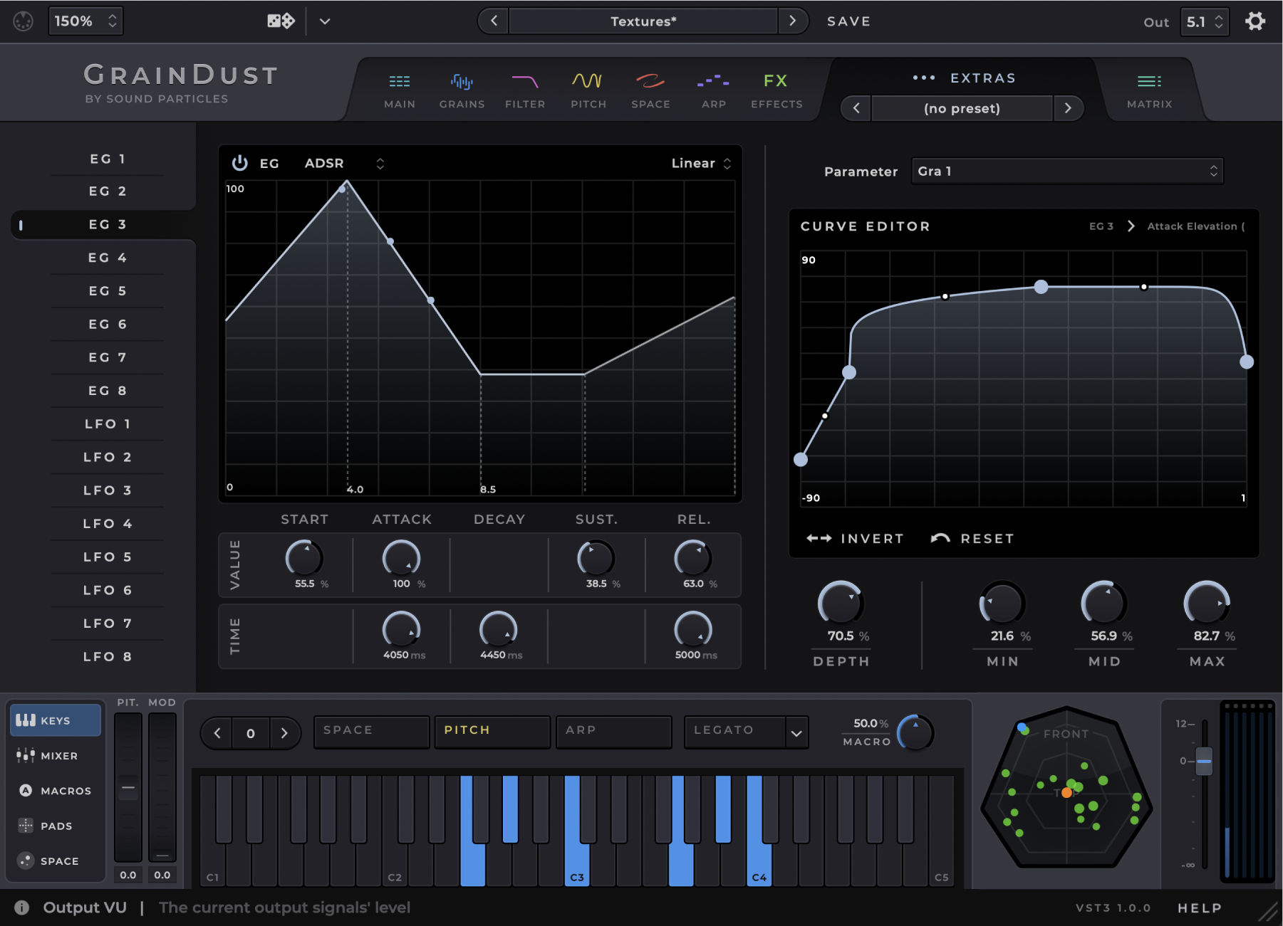 Apply filters globally or per granular layer, each with its own EG and LFO for precise control.