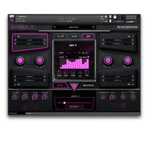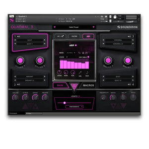 The user interface is built around four separate quadrants, an assignable XY Pad, and arpeggiator system to expand your creative potential. Each layer in Quadral 3 has fully independent sound-shaping options including Attack, Release, Offset, Pitch, Pan, and more. Every quadrant has its own individual arpeggiator and filter with 39 built-in filter types.