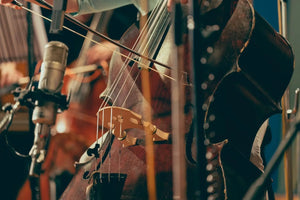 A pair of original 1940s RM1B ribbon microphones placed in front of the conductor to create a vintage scoring stage sound