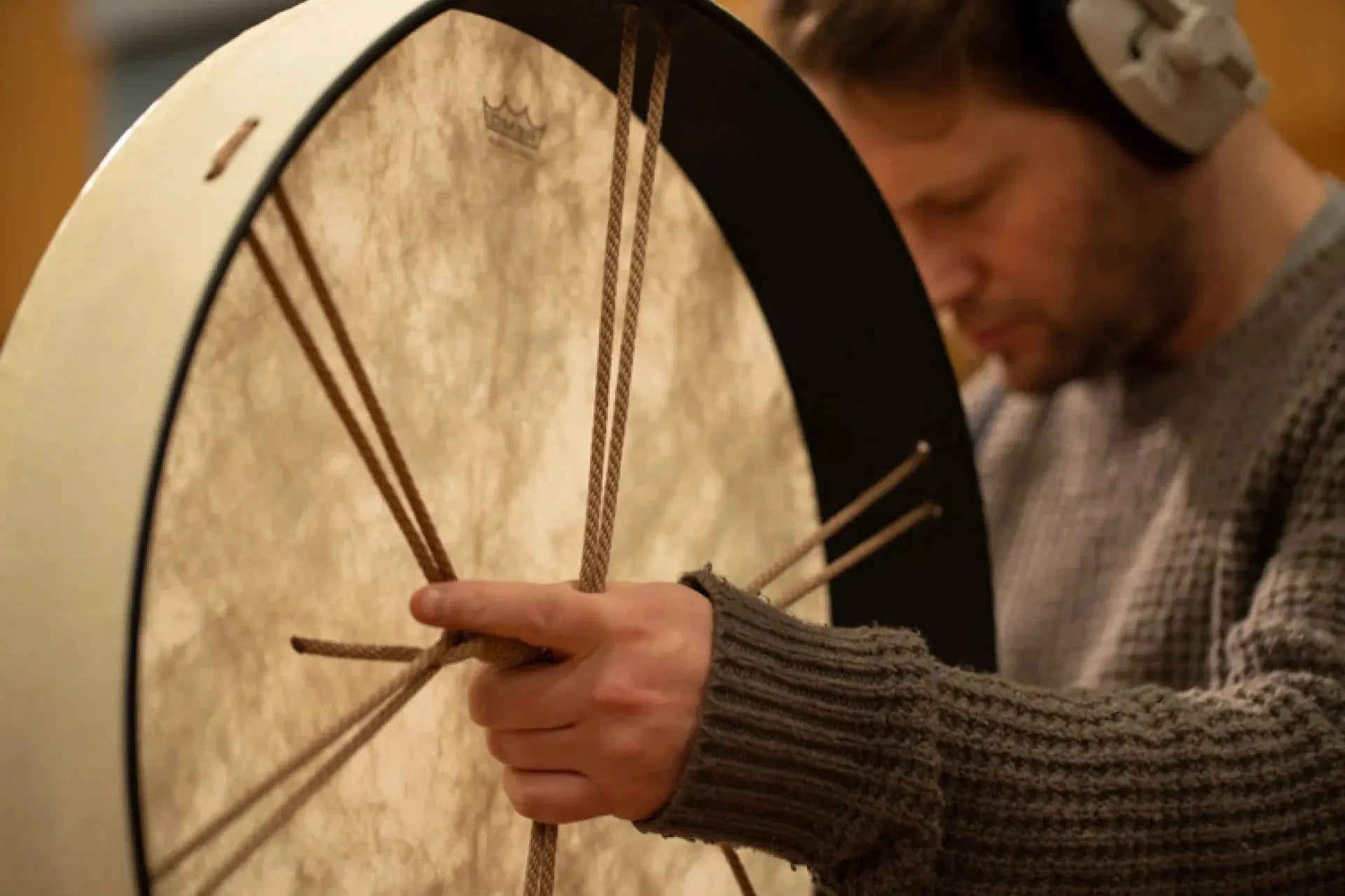 Constructed from a shallow wooden frame clad with a 22” buffalo skin head, this drum produces strong overtones with a rich, blooming sustain.