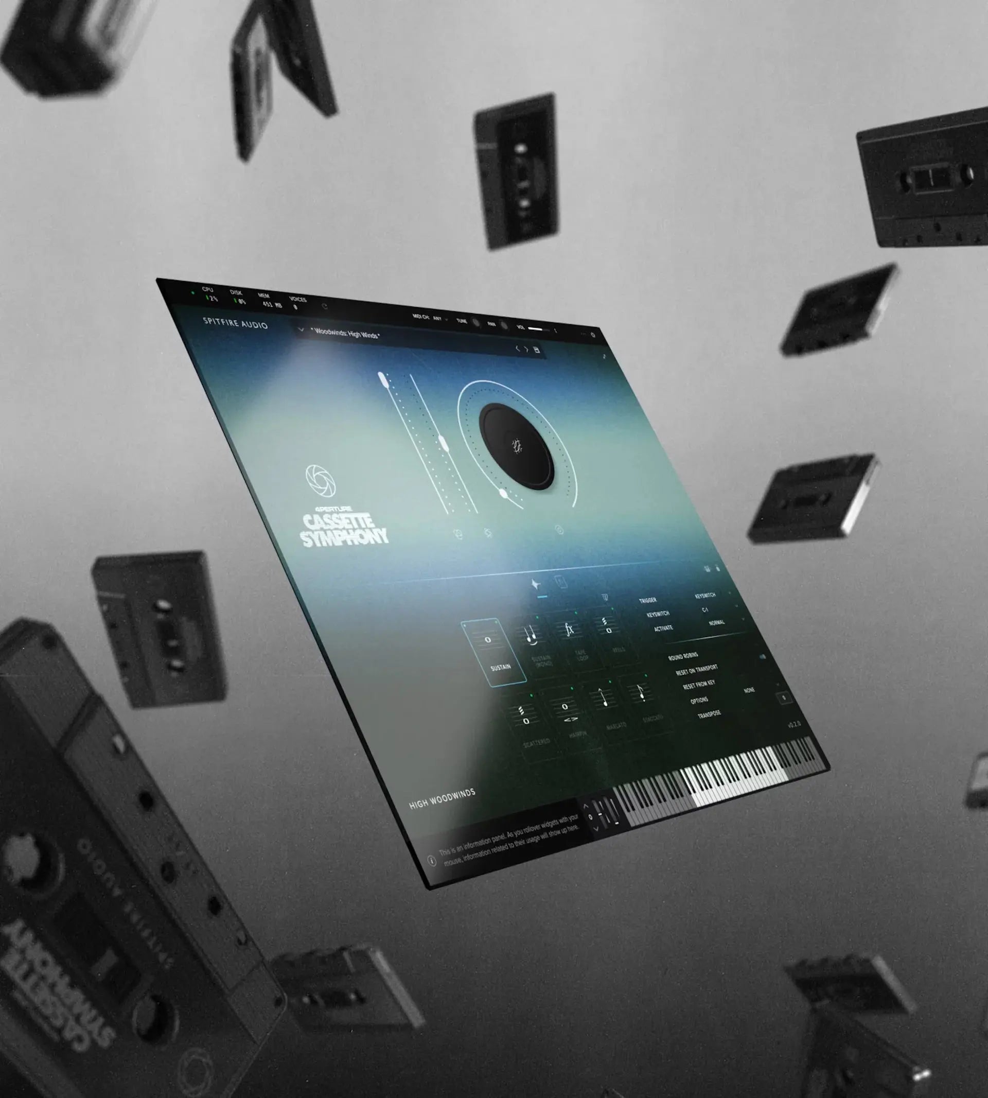 Prepare for orchestral time travel - go from intimate solo players to a full symphony — in an instant — resampled through 200 cassette players, all in the same virtual instrument.