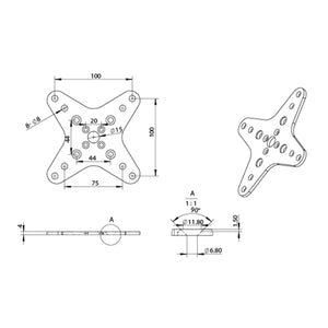 The SM-VM1 has two swivel connection hole patterns. 40x40mm for the SW-1 swivel and 20x20mm for the SM-UM1 swivel.