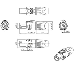 4-pole loudspeaker connection with a robust metal housing female. Max. Current of 40 amps