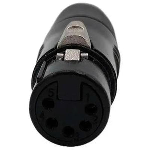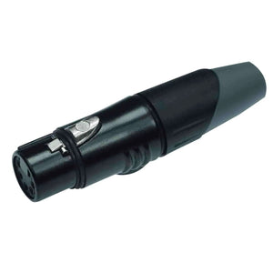 XLR cable connector female 5-pin black housing and grey boot solder cups"