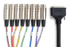 This snake is designed to connect gear with XLR outputs to gear with DB25 inputs. It is ideal for use with mixing consoles, patch bays, and multitrack recorders. Features include: