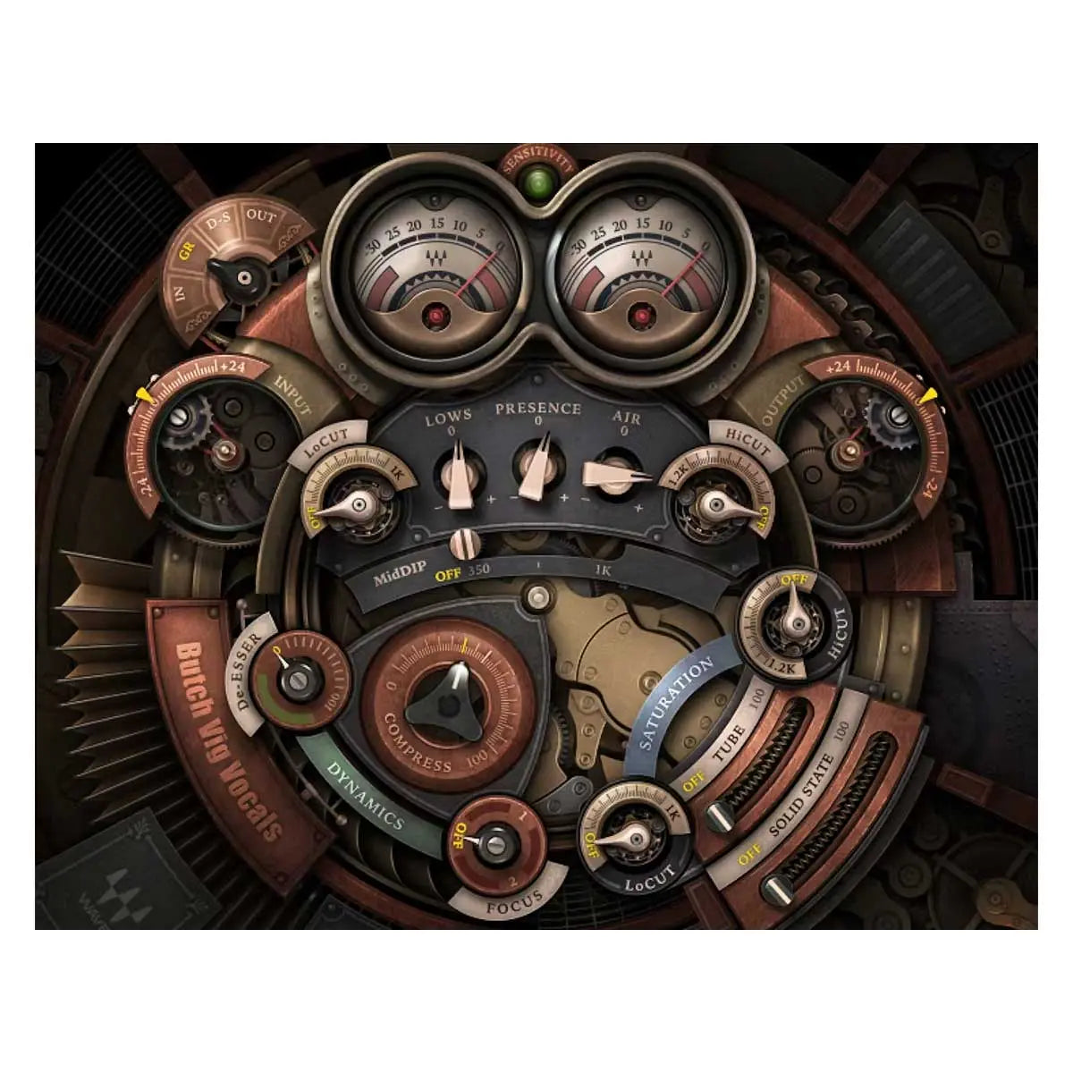 When developing the plugin, Butch reviewed his work on original sessions with Nirvana, Smashing Pumpkins, Foo Fighters, Green Day and Garbage, and found certain “magic” frequencies that always did the job. The Mid Dip filter, Lows, Presence, and Air controls come pre-tuned to these ideal EQ curves.