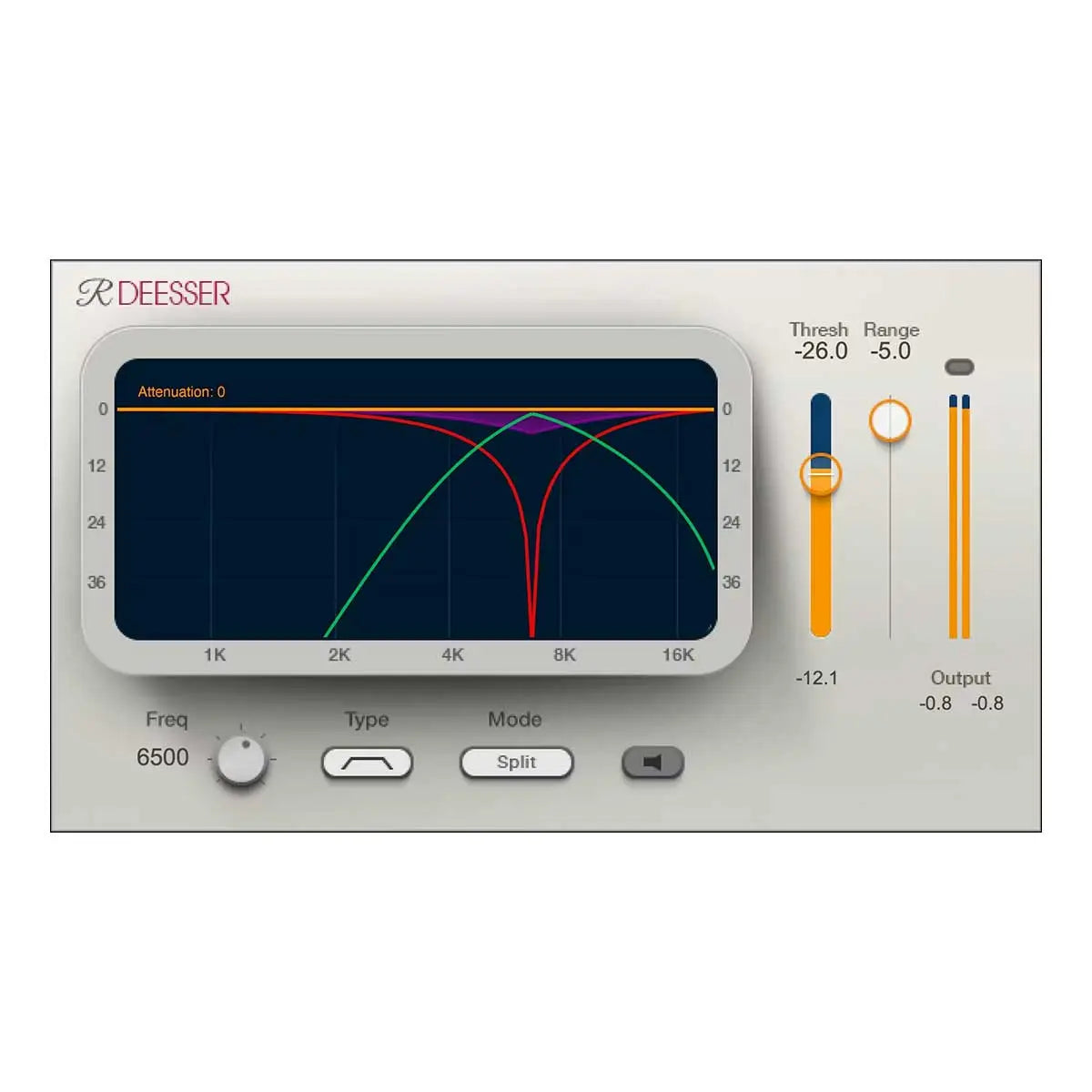 Renaissance DeEsser delivers transparent, artifact-free de-essing that focuses on reducing ess sounds with laser-like precision.