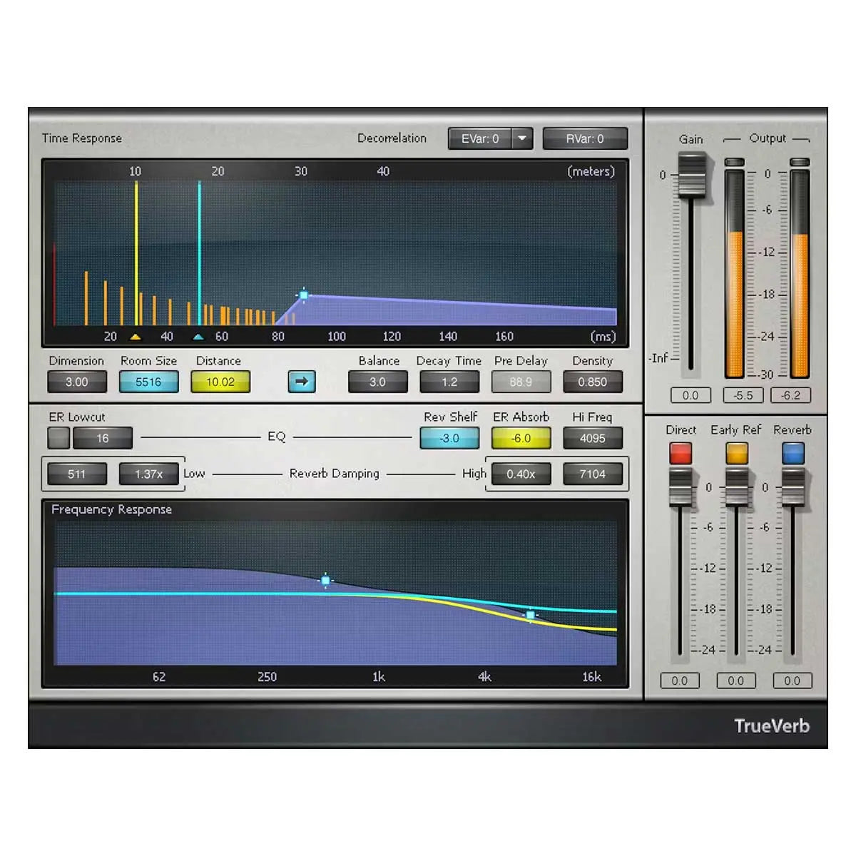 Combining reverb, an early reflections simulator, and an intuitive interface, the TrueVerb reverb plugin makes it easy to create natural-sounding acoustic spaces.