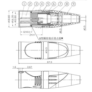 XLR cable connector male 5-pin IP65 black metal housing and orange boot solder cups