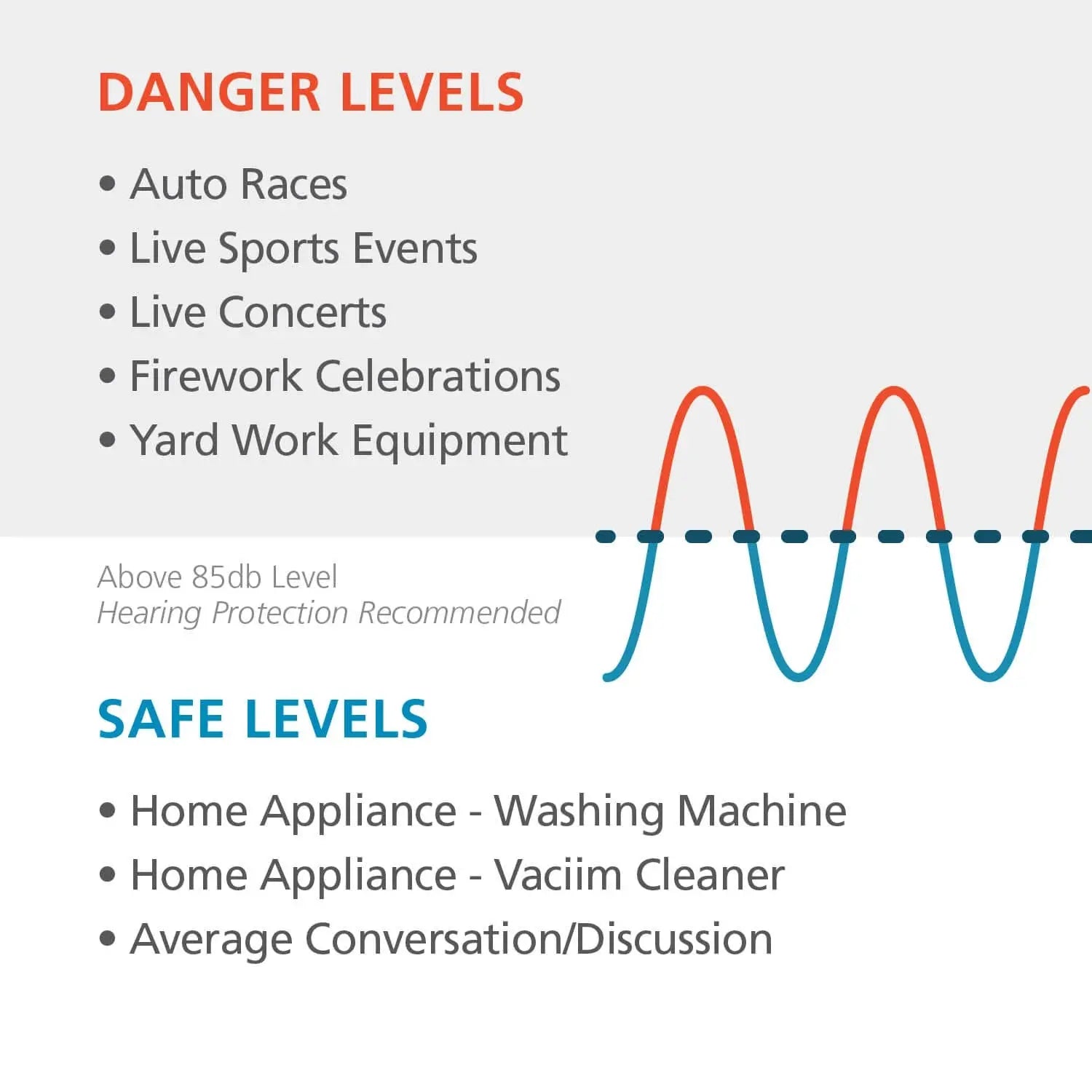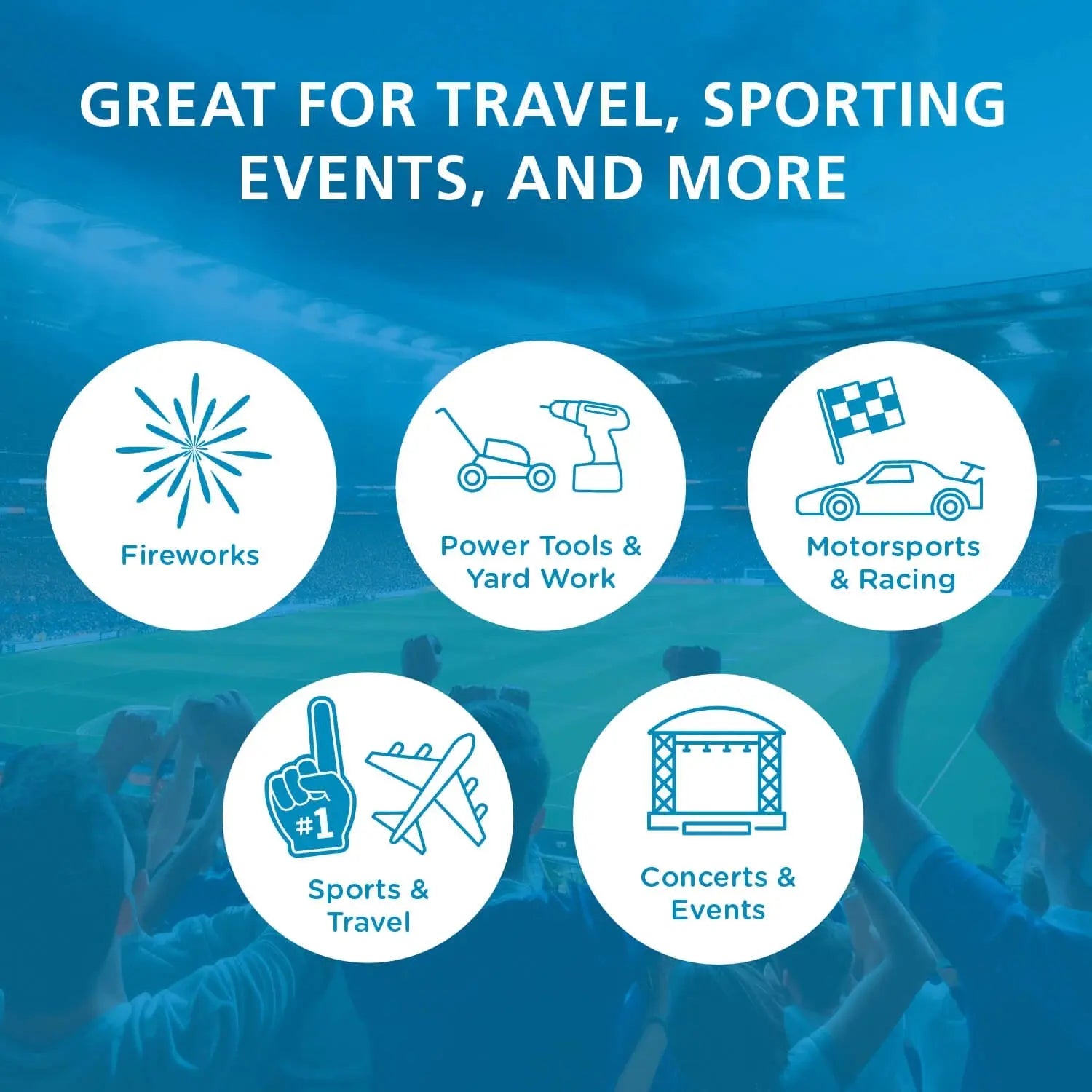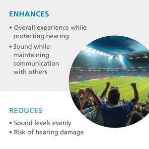 • Reduces risk of hearing damage for many noisy occupations as well as noisy venues, such as airshows, parades, athletic events and motor sports.