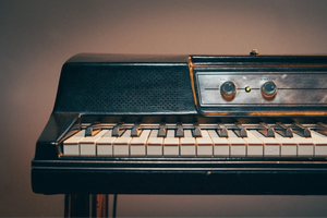 The keyboard amplified through a Ampeg B-15 amplifier