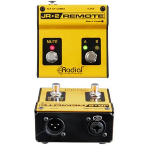 The Radial JR-2 is an innovative remote control that is equipped with two footswitches - designated as MUTE and AB select. Although designated this way, the actual functionality of the switch depends on the specific Radial product that is connected. The JR-2 connects to the device using a standard balanced audio cable with choice of ¼" TRS or XLR connections. The JR-2 is unique in that it derives its power from the device being controlled which in turn illuminates the on-board LED indicators to show the remote status. Both switches are latching type.