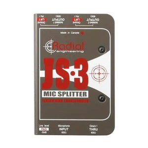 The JS3 is a professional mic splitter designed to split a single source to multiple destinations simultaneously without signal degradation or noise. A premium Jensen transformer inside provides galvanic isolation to eliminate buzz and hum from ground loops, while maintaining an extremely wide bandwidth with ultra-low distortion and phase shift. Ground lifts on the outputs help further reduce noise, while an input pad allows line-level sources to connected as well. Both the JS2 and the JS3 can be rack mounted for touring and installation purposes, with up to eight fitting in the Radial J-Rak.