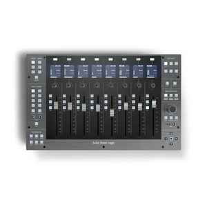The Solid State Logic UF8 controller delivers a new level of user focused design; insightful displays, intelligent fader and control access and function, multiple stand angles for user defined placement, and a production workflow enhancing control layout. The high-spec touch sensitive faders, encoders, and high-resolution colour displays, compliment the premium build quality that belie this new price point for an SSL controller.
