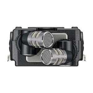 • Detachable large-diaphragm condenser mics can be configured for A-B and X-Y stereo recording