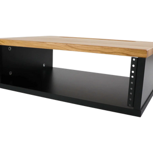 The rack features three height units (3U), providing enough space for your essential gear, while the top panel is finished in elegant solid oak and includes a cable management channel to keep your setup clean and organized.
